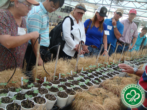 2013年美国棉花育种现场会主要安排参观了德克萨斯州农工大学农业研究中心在拉伯克和哈夫韦试验点的棉花抗病、抗旱、耐盐筛选试验地和德克萨斯州棉花新品种、新品系的联合展示试验田,以及德克萨斯州理工大学纤维研究所纤维检测和纺纱实验室、美国农业部干旱研究中心的棉花商业化品种田间抗旱试验、PYTO公司的棉籽加工厂、Bayer公司作物育种试验站和Monsanto公司人工气候室、无尘轧花、硫酸脱绒和全程机械化仪器设备等。