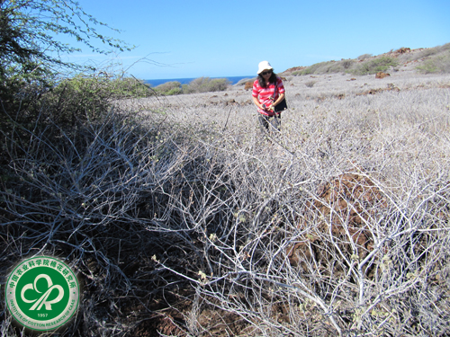 考察团主要对瓦胡、拉奈和莫洛凯3个岛进行综合性考察,调查了毛棉的自然分布、生态环境、形态特征等基本情况,收集一手原始资料,并采集原产地样品。本次考察共采集到20份样品,其中毛棉15份、海岛棉4份、棉花野生近缘植物1份,在一定程度上丰富了我国野生棉基因资源的遗传多样性。最大收获是在拉奈岛发现了3个比较大的自然居群,其中1个居群超过万株,是近几年夏威夷群岛毛棉考察活动中发现的最大自然居群。毛棉自然居群基本上都分布在海边或海边的山坡上,有些就在乱石堆里,周围很多植被都已枯死,毛棉却一枝独秀地顽强生长,显示出很强的耐旱、耐盐碱性能,具有很大的潜在利用价值。