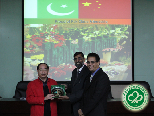 此外,Dr. Ahmad Bakhsh和Dr. Shaukat Ali还就巴基斯坦棉花生产研究现状做了题为“Cotton Production and its Research Status in Pakistan”的报告,详细讲解了巴基斯坦棉花生产现状、主要机遇和挑战,并对Bt转基因棉和三系杂交棉的研究进展等情况进行了介绍。