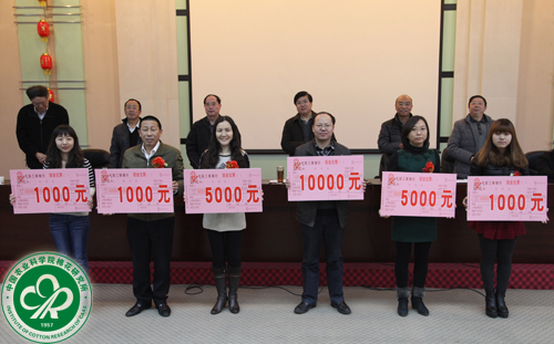 会上,副所长侯志勇传达了李家洋院长在中国农科院2014年工作会议上的报告《全面深化改革 加快世界一流院所建设步伐》,副所长王坤波传达了陈萌山书记在2014年院工作会议上的讲话精神,副书记宋国立传达了院党组纪检组组长史志国在中国农科院2014年党风廉政建设工作会议上的工作报告,副所长刘金海宣读了关于表彰2013优秀人员和突出贡献集体和人员的决定。