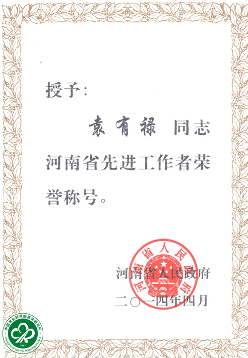 先进工作者是时代的精英、民族的脊梁,社会的楷模。在他们身上充分体现了与时俱进、开拓进取、求真务实、无私奉献的劳模精神,袁有禄是中棉所人优秀品质的集中反映,是全所职工的榜样。