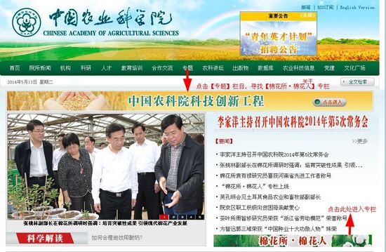 发布时间:2014-05-14 来源 :中国农业科学院网 访问量 : 作者: 棉花研究所、信息所网站资源系统室、院办公室