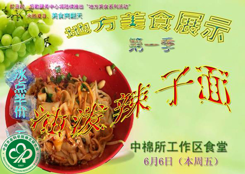 2014年6月6日,由后勤服务中心筹划的“地方美食展示”第一季在工作区职工食堂顺利举行。此次展示的陕西传统美食——油泼辣子面口味纯正、鲜香,得到广大职工、学生的一致认可。