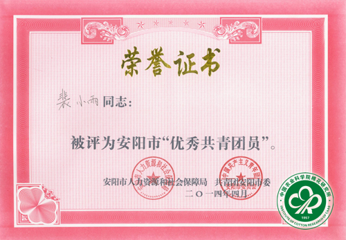 日前,从安阳市纪念五四运动95周年大会上传来喜讯,我所棉花基因组测序创新团队获“安阳市新长征突击队标兵”荣誉称号,团委副书记王晓辉获“安阳市模范团干部”荣誉称号,长江育种课题组裴小雨获“安阳市优秀共青团员”称号。