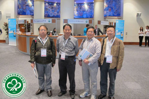 喻树迅院士和杜雄明、叶武威、袁有禄在会议中心