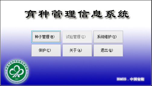 系统主要功能包括:种子管理(包括种子登记、试验安排及试验联系人信息等),系统保护(密码设置、数据加解密),高级权限访问,系统维护(系统参数设置、数据清零),数据汇总及视觉调整等功能。