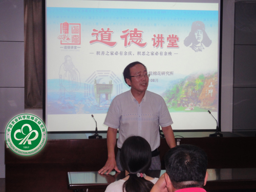 辛秀梅同志的事迹不仅感动了大家,还激发了我所职工的爱国奉献热情,在诵经典环节,大家一起诵读了《论语·颜渊》中 “君子成人之美,不成人之恶,小人反是”的经典,朗朗的诵读声将讲堂推向了高潮。榜样的典型事迹激励着大家,大家表示要学习榜样,做好本职工作,为我国棉花科技创新多做贡献。(摄影:杨晓东)