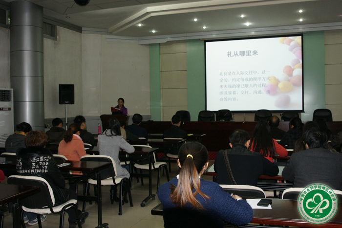为弘扬传统美德,教育职工知文明,懂礼仪,提升职工文明素养,推进我所职工文明礼仪水平的不断提高,2014年11月14日,我所礼仪讲座在产业楼多功能厅举行,邀请礼仪老师许英杰担任主讲。