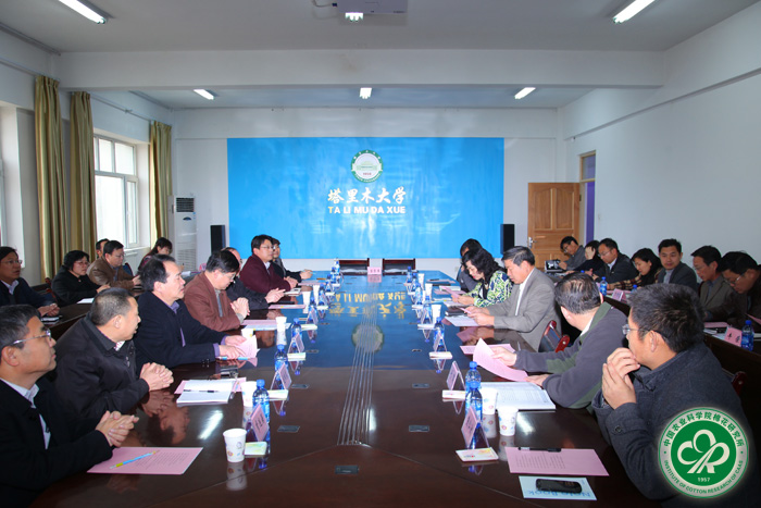 会上,李付广指出:新疆尤其南疆已成为我国最大的棉花生产区,棉花产业是新疆各地州和兵团的重要经济支柱;我所与塔里木大学要坚持“立足南疆,面向中亚”,结合中央对南疆的重大战略部署和“丝绸之路经济带”建设,共同助推南疆棉花产业发展,这对于保障我国棉花产业安全、民族团结和边疆稳定具有重大意义;希望通过双方共同努力在塔里木大学组建我国唯一的棉花科学学院,并将该学院打造成为棉花科技和人才输入中亚的桥头堡,逐步发展成为我国科技振兴南疆、科技输入中亚的领军力量,实现棉花西进中亚的战略目标。