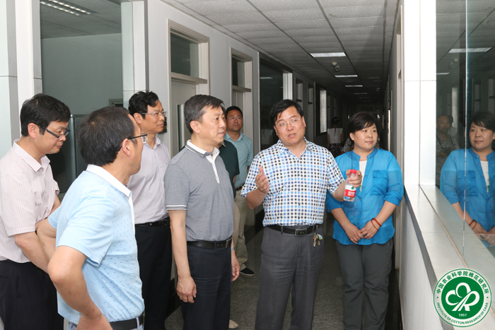 河南省爱卫办主任、卫计委副主任黄玮和市委常委、常务副市长王新伟一行在我所所长、党委书记李付广和副书记宋国立陪同下先后参观了成果展览室、日光温室、水生态修复科研示范项目、棉花生物学国家重点实验室等,对我所“创卫”复审工作进行全面、细致地检查。此外,技术评估组专家还对我所爱国卫生组织管理等工作进行了检查指导。