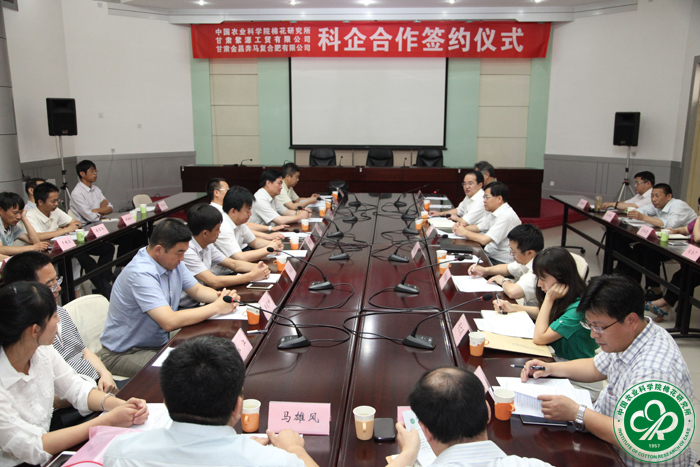 会上,李付广指出,我所成果转化工作多年来一直主要集中在棉花品种成果转化方面,但种子占棉花种植成本比例很低,肥料、农药等农业生产资料及农机机械等占棉花生产成本的绝大部分份额。因此,在中国农业科学院“顶天立地”科技工作战略方针下,我所应积极拓宽科技成果转化新思路和新渠道,全力打造棉花“种子—节水—肥料—农药与飞防—机械—种养一体化—服装—电商”全产业链科企合作布局,全面构建大农业技术、产品等综合服务体系,力争成为惠及“三农”的生力军和综合服务平台。此次三方合作并组建成立合资公司,专业研发、生产、推广新型生物肥料,将为农业部正在实施的“减肥减药”行动贡献力量。同时,该合资公司的组建是我所科企合作工作由单一的种子向全产业链转移的具体措施之一,将为科技成果转化成功引入民间资本运作树立新的风向标。希望签约各方秉承着眼未来、互利共赢的原则,充分发挥各方优势,做到强强联合、优势互补,努力将合资公司打造成科研单位与民营企业合作的典范,并为我所全产业链科企合作树立榜样。为确保合资公司的创新能力及稳步持续发展,我所将为合资公司组建成立专门的肥料研发团队,并构建“研发团队由我所管理、为合资公司服务”的科企合作新机制。