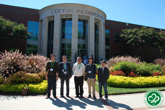 2015年9月13~19日,应美国棉花公司(Cotton Incorporated)邀请,我所遗传育种室杨代刚研究员、严根土副研究员、吴建勇副研究员、庞朝友副研究员和栽培室张雷副研究员参加了2015年美国棉花育种现场考察会(2015 Cotton Breeder’s Tour)。