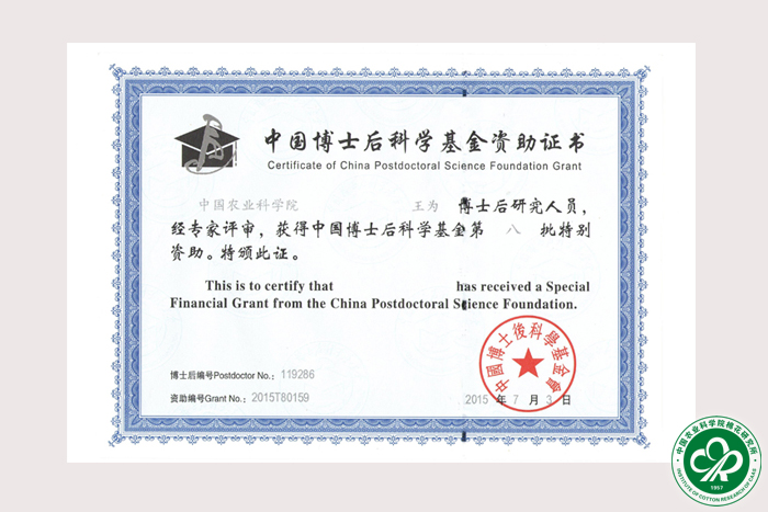 日前,从人社部全国博士后管理办公室传来喜讯:我所博士后研究人员王为(合作导师:喻树迅院士)获得中国博士后科学基金第八批特别资助,这是我所首次获得该项目资助,同时也是今年我院获批的2项特别资助之一。