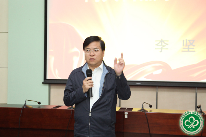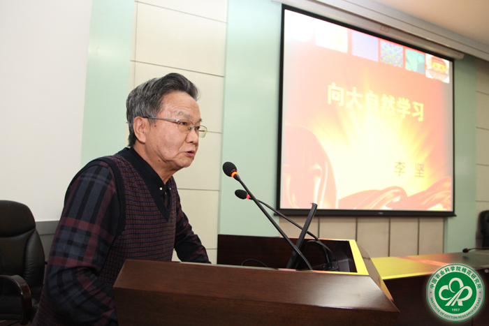 2015年10月11日下午,中国工程院院士、东北林业大学李坚教授来我所做学术报告。中国农科院副院长唐华俊、所长李付广、喻树迅院士以及栽培室、植保室和检测中心等单位相关专家出席报告会,我所科技人员参加报告会。