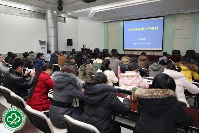 刘玉乐教授是国际上使用最广泛的病毒基因沉默载体—TRV VIGS载体的发展及传播者,他以“植物抗病毒分子机制”为题,全面系统的讲解了VIGS载体在植物抗病和其他研究领域中的应用。重点介绍了植物—病毒互作:发现病毒在植物抗病反应中,细胞自噬(Autophagy)在限制病原(包括病毒,细菌,真菌)诱导的细胞死亡到病原侵染点起关键作用,以及其他多个基因在植物抗病毒过程中起关键作用。同时介绍了VIGS载体系统在转基因方面应用的优势。