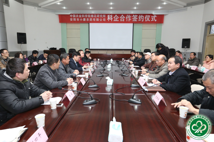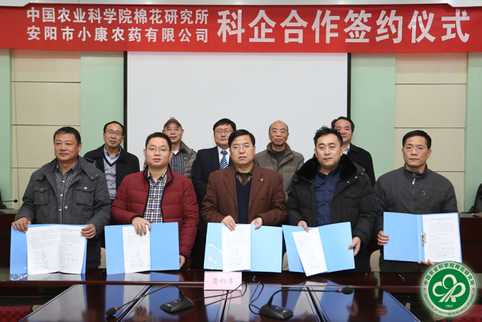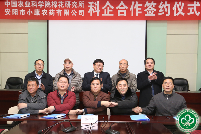 2016年1月29日,我所与安阳市小康农药有限责任公司在产业楼多功能厅举行了科企合作签约仪式。所长李付广和小康公司董事长、总经理张黎明及公司其他股东分别代表各方在合作合同书上签字。签约仪式由副所长张西岭主持。