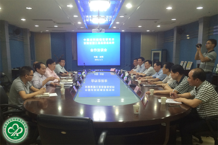 2016年6月3~4日,望江县县委书记李跃云、副县长汪森一行来我所考察交流。所长李付广、副所长侯志勇和张西岭、计划财务处处长马雄风等有关部门领导参加合作交流会。
