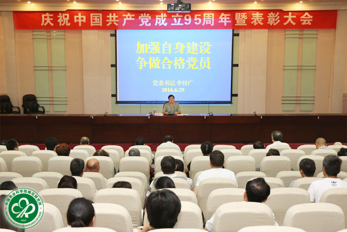 李付广强调,所领导班子成员要躬身先行、以上率下,当好表率、立好标杆,发挥党员领导干部这个“关键少数”的作用。要激活基层党组织,把全面从严治党落实到每个支部、每名党员。要坚持把学习教育与中心工作紧密结合起来,与巡视整改工作紧密结合起来,要把推动“两学一做”学习教育与贯彻落实中央“三农”决策部署、完成“十三五”农业科技创新任务、深入实施我院科技创新工程、履行棉花科研国家队使命、推动国家棉花产业联盟建设等中心工作紧密结合起来,切实促进棉花生产在经济新常态下的持续增长。