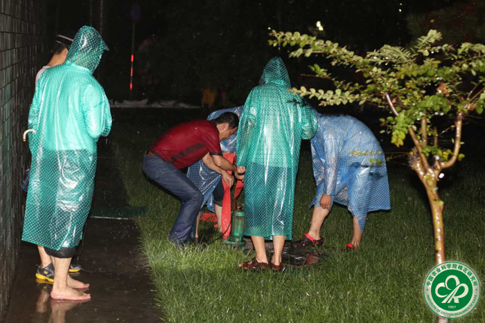 2016年7月19日,安阳突降暴雨,我所干部职工和研究生齐心协力共同防汛抢险,确保了我所各项工作正常开展。