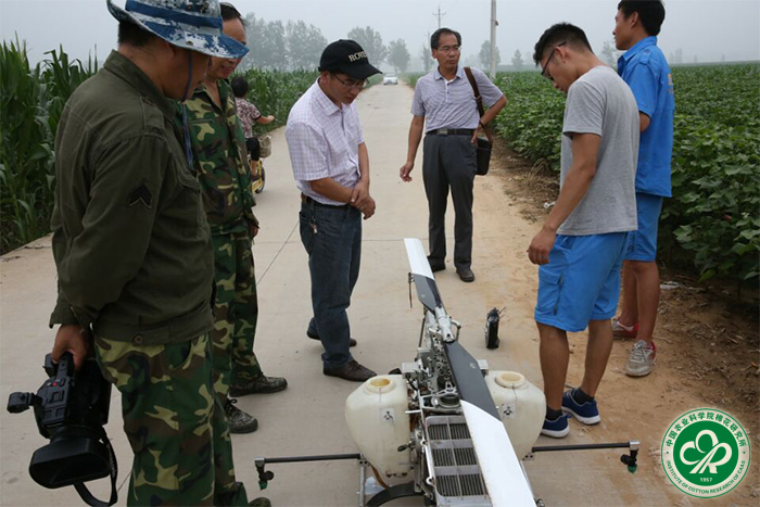 目前,正处于棉花生产管理关键时节,试验农场总场、后勤服务中心试验队和安阳安飞客农业科技有限公司合作,对我所1000多亩棉田进行了无人机飞防作业。