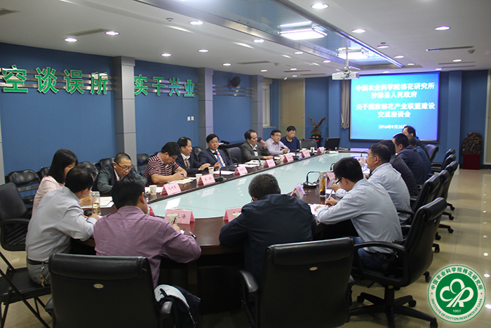 翟玉清介绍了沙雅县县情和当地棉花生产发展的基本情况,希望我所组织专家在沙雅县开展相关技术研究,沙雅县政府将提供试验用地及相关配套方面的支持。沙雅县政府将积极参加国家棉花产业联盟建设,愿意在联盟中发挥有益作用。