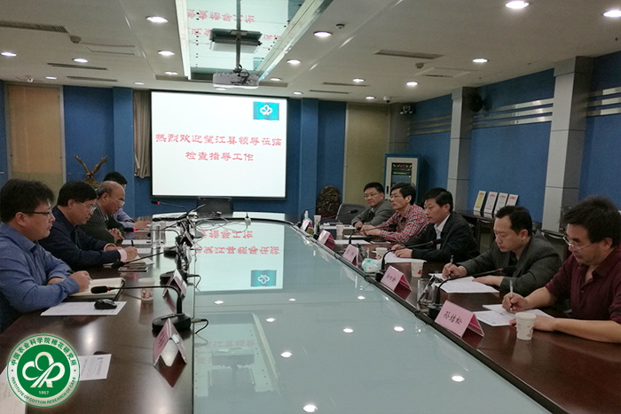 会上,李付广对望江县政府长期以来对我所长江生态试验站的关心和支持表示感谢。李付广简要介绍了目前棉花产业发展面临的困难和问题。他表示,我所作为国家级棉花科研单位,需要积极推进我国棉花产业的供给侧结构性改革,在农业部和中国农科院领导的大力支持下我所牵头组建了国家棉花产业联盟,将积极推动棉花产业实现结构、方式、体制和机制上的创新。李付广指出,望江县作为优质棉生产大县、纺织服装产业集群,我所与望江县合作,正是推动国家棉花产业联盟建设的重要内容之一。我所将充分发挥科研和人才优势,带动望江县农业和纺织服装产业发展,共同为望江县科技创新和经济社会发展做出贡献。他希望双方共同努力把长江生态试验站打造为现代化的科研示范基地,为棉花育种专家提供良好的科研平台,为国家棉花产业联盟长江流域的建设发展提供技术保障。
