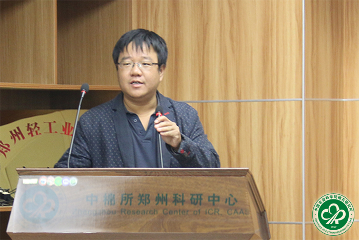 孔照胜研究员做了题为“Cytoskeletal control of trichome cell shaping:from Arabidopsis trichomes to cotton fibers”的学术报告,详细讲解了细胞骨架在棉花纤维细胞伸长及次生细胞壁加厚过程中的调控机制,就师生们提出的问题进行了解答。此外,孔照胜与棉花转基因课题组成员就植物激素通过细胞骨架调控纤维发育的可能机制进行深入探讨,并与中心实验室管理人员座谈交流,就实验室建设提出了意见和建议。此次交流为棉花生物学重点实验室开展棉花细胞学等方面的基础研究拓展了思路。