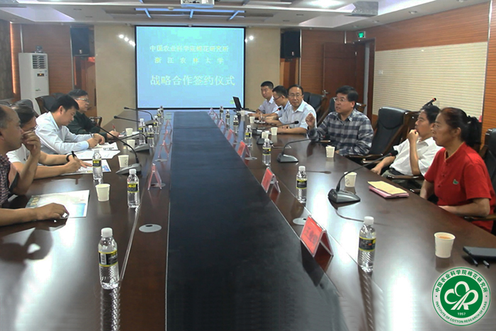 会上,李付广回顾了十多年来我所和棉花产业的发展历程。他指出,我所作为全国棉花科研中心,担负着棉花产业可持续发展的重要历史使命,需要始终围绕现代棉花产业发展战略需求,以超前理念凝练提升棉花重大科技创新目标,以全局观念审视棉花科技发展新方向。李付广强调,现代化农业的发展核心动力需要科技和人才支撑,希望双方通过发挥自身科技、教育等领域的资源优势与特色,通过科研合作、平台共建与共享、学术交流、人才互聘等方式,形成集聚效应,共同提高科学研究水平。