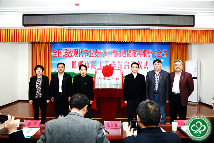会议举办了邯郸市农科院院士工作站启动仪式。吕春生受邀致辞,喻树迅和徐付军共同为院士工作站揭牌。来自全国各大棉区的50余位与会代表出席仪式,并参观了邯郸市农科院,听取了蔺桂芬关于该院工作情况及院士工作站规划与设想的汇报。