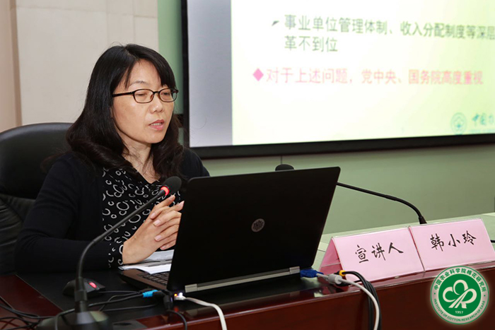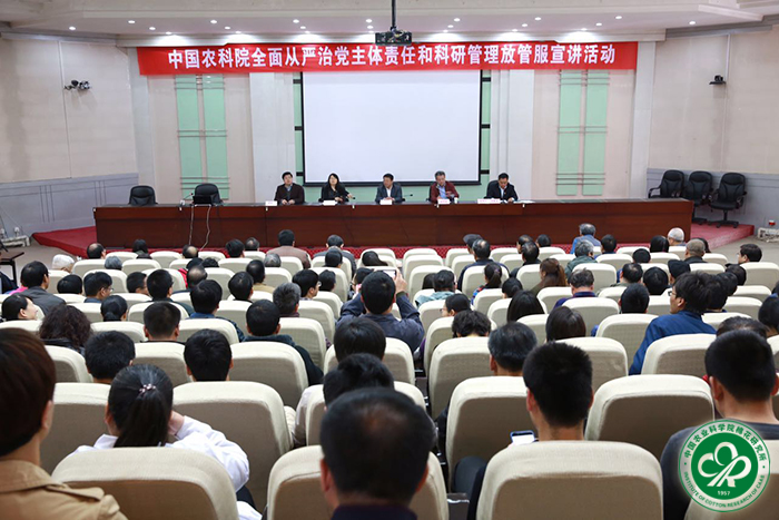 2017年4月17日上午,由中国农业科学院李金祥副院长、院巡视组王志东副组长和院财务局韩小玲副局长组成的宣讲团在我所学术报告厅进行“全面从严治党主体责任和科研管理放管服”宣讲。党委书记吕春生主持会议。