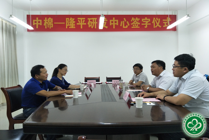 2017年6月23日,我所与安徽隆平高科种业有限公司共建“中棉-隆平长江研发中心”签字仪式在合肥市举行,党委书记、副所长吕春生与隆平高科执行总裁、安徽隆平总经理张秀宽代表双方签订合作协议。仪式由计划财务处处长、长江科研中心主任马雄风主持。