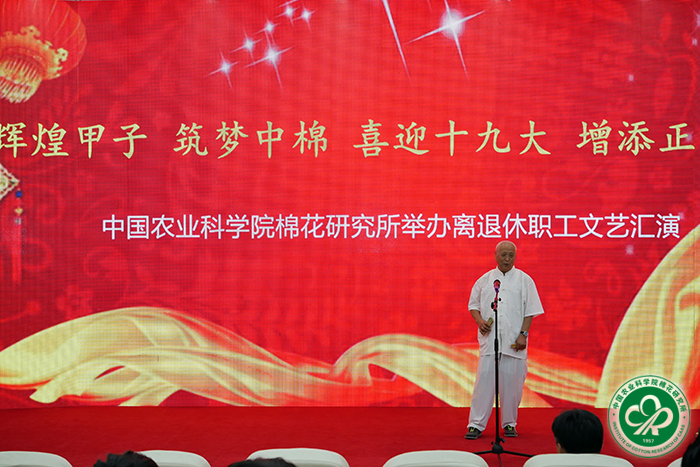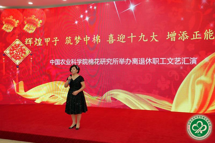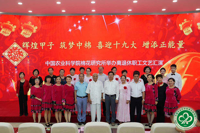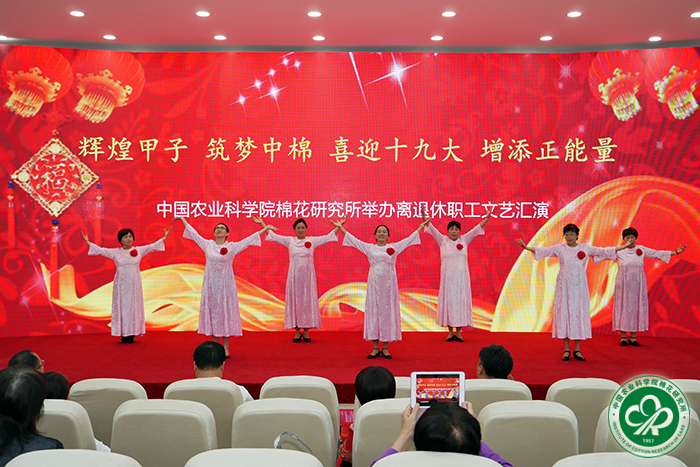 为认真贯彻落实《农业部办公厅关于在部系统离退休干部中组织开展“畅谈十八大以来变化、展望十九大胜利召开”活动的通知》文件要求,2017年9月8日下午,我所举办了以“辉煌甲子 筑梦中棉喜迎十九大 增添正能量”为主题的离退休职工文艺汇演。所长李付广、党委书记吕春生、副所长侯志勇、副书记宋国立等100余人观看汇演。