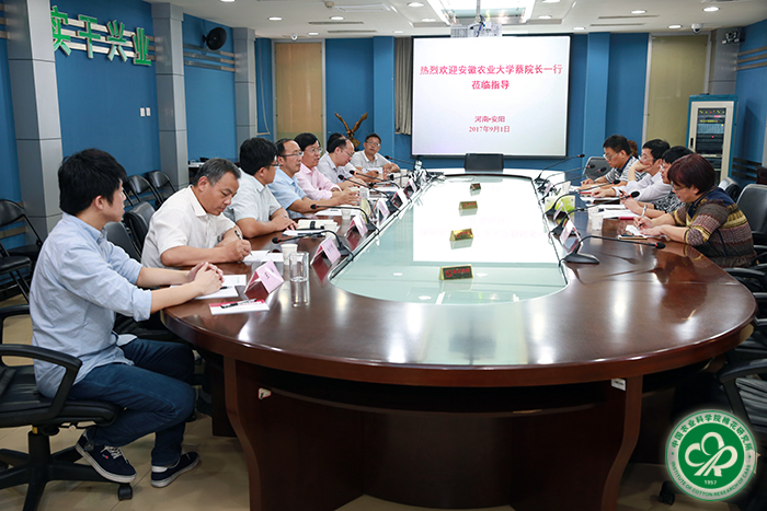 会上,所长李付广对蔡永萍一行表示欢迎,他希望,我所和安徽农业大学通过科研项目合作、人才交流与联合培养、科研基地共享等方式实现双方全面战略合作,共同助力我国长江流域棉花产业发展。