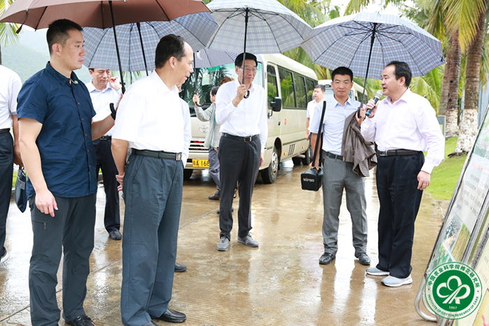 2017年11月7日上午,全国人大常委会副委员长吉炳轩带领海南省政府、省农业厅等单位领导同志一行30余人到我所三亚大茅基地考察调研。副所长张西岭、海南科研中心相关人员全程陪同。