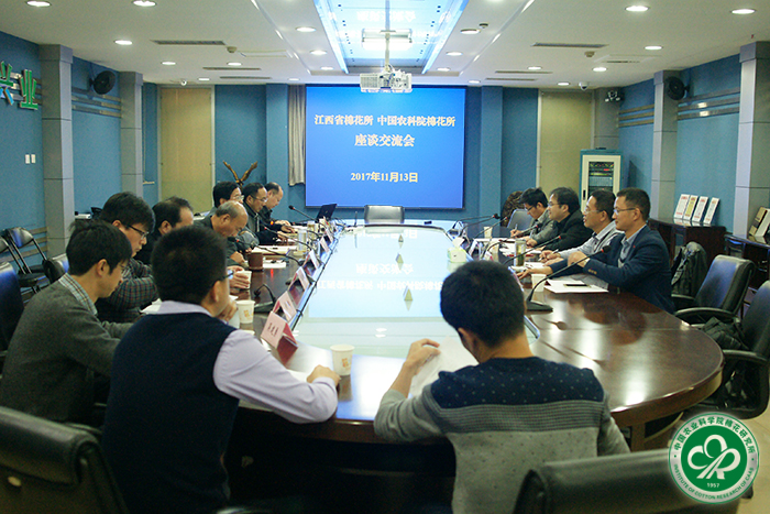 2017年11月13日,江西省棉花研究所党委书记余进祥一行到我所访问交流。所长李付广、副所长侯志勇、副书记宋国立、副所长张西岭及科技管理处、成果转化处负责人参加座谈。