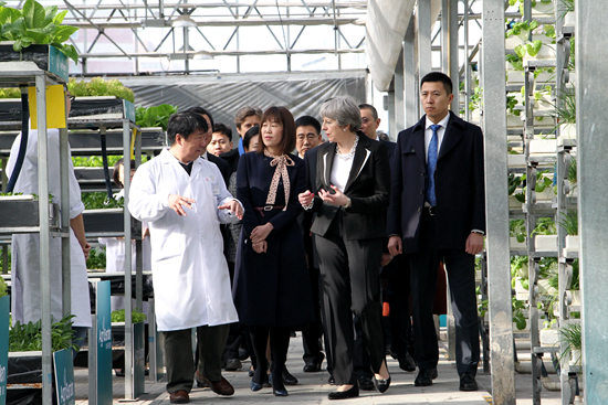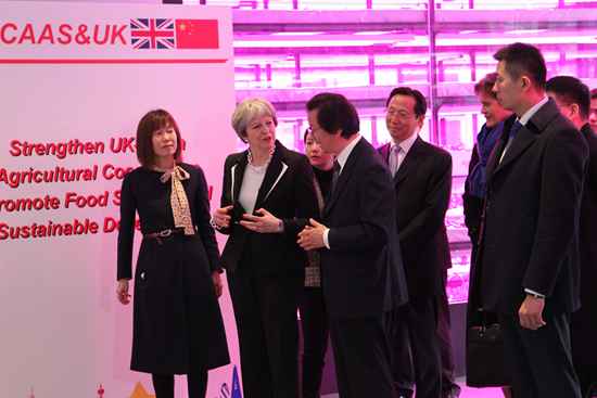 2月1日上午,英国首相特雷莎·梅到中国农业科学院参观了国家现代农业科技展示园。农业部部长韩长赋,中国驻英大使刘晓明,农业部党组成员、中国农科院院长唐华俊,院党组书记陈萌山陪同参观。