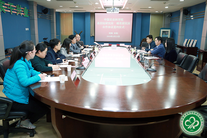 李付广在致词中指出,加强兄弟院所协同创新是推动重大成果培育、加强人才培养、实现平台共享、提升研究生教育的重要途径。双方在棉花基因组学领域具备良好合作基础,进一步发挥基因所区位、政策优势及棉花所应用优势,将实现双方互利共赢和跨越发展。