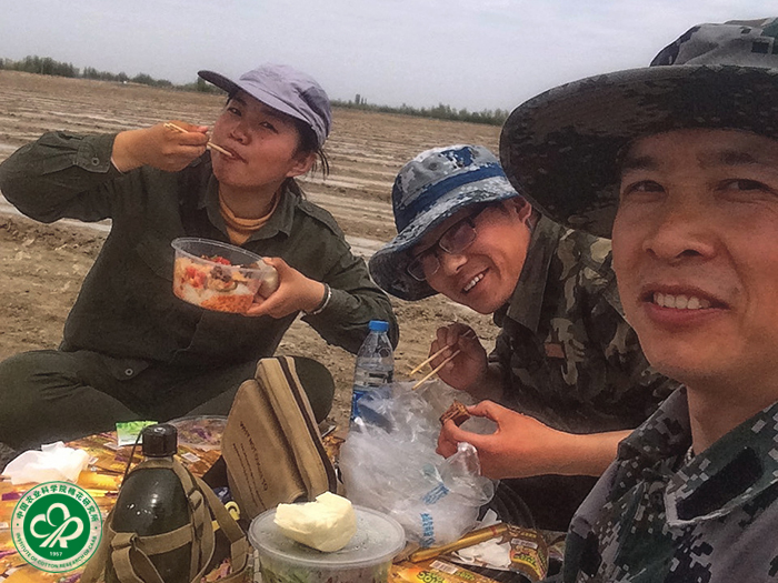 4月22日 新疆胡杨河综合试验站植棉技术标准化课题组播种时午餐情形