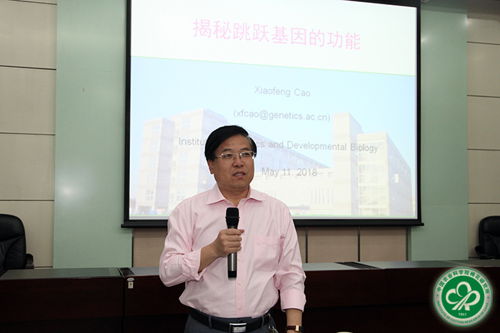 2018年5月11日下午,应抗逆遗传改良创新团队邀请,中科院遗传与发育生物学研究所曹晓风院士为我所科研人员作了题为《揭秘跳跃基因的功能》的学术报告。所长李付广主持报告会。