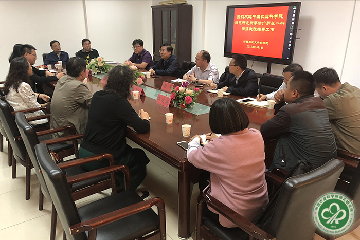 6月1日下午,李付广一行与新疆农业科学院院长陈彤、副院长杜伟、副院长康威及相关部门负责人等进行座谈交流,双方在共建新型研发机构、启动全疆棉花品质区划研究、加强“一带一路”合作,深化干部交流、人才培养以及联合扶贫等领域达成系列共识。