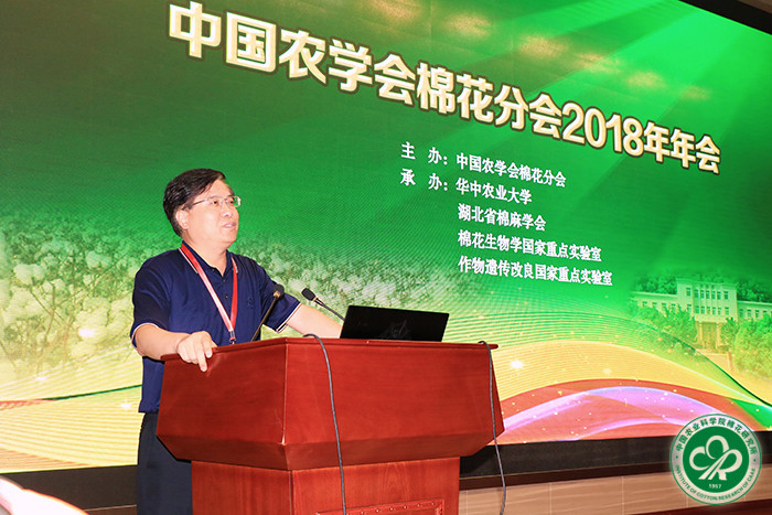 中国农学会棉花分会2018年年会于8月8~9日在湖北武汉召开,会议由华中农业大学、湖北省棉麻学会、棉花生物学国家重点实验室和作物遗传改良国家重点实验承办。来自全国18个省(市)、自治区,120多个高校、科研、生产、管理和企业近600名代表参加了本次会议。会议主题:绿色植棉、创新发展。会前编辑出版论文汇编,收录学术论文(摘要)170篇。
