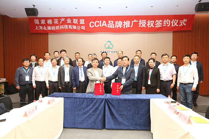 今年是国家棉花产业联盟(以下简称国棉联盟)CCIA品牌的创建、培育年,也是CCIA品牌的推广年。10月15日上午,国棉联盟与上海永澳纺织科技有限公司(以下简称永澳公司)联手共同打造、培育CCIA品牌,举行了CCIA品牌的推广授牌和签字仪式,参观了永澳公司,CCIA品牌已在永澳公司高品质纯棉面料和高品质棉制服装都有吊牌。