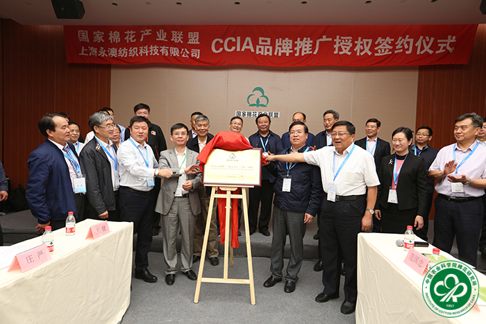 会议期间,国家棉花产业联盟与上海永澳纺织科技有限公司共同签署了《CCIA品牌推广合作协议》,并为“CCIA品牌推广与展示中心”揭牌并颁发授权证书。