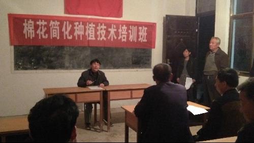 严根土利用晚上给贫困地区棉农进行技术培训(央广网发 中棉所供图)