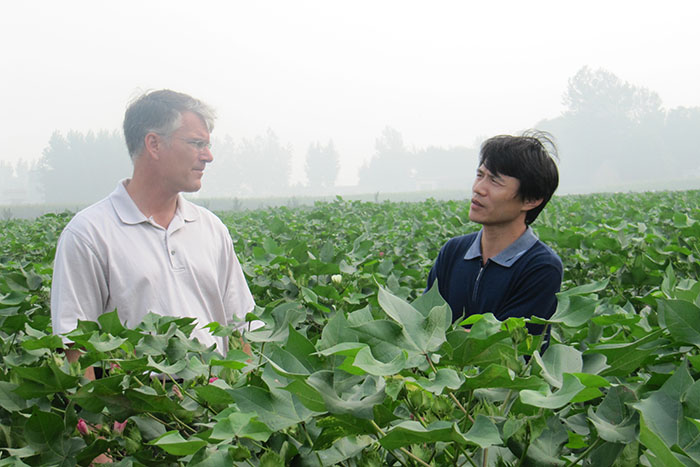 严根土与美国育种家交流(央广网发 中棉所供图)