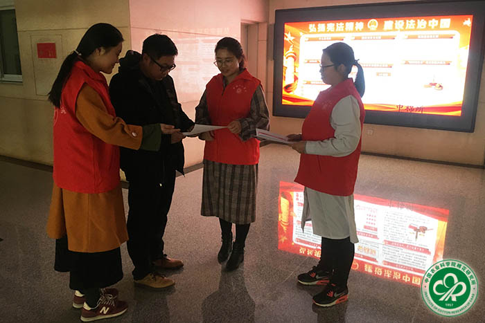 为迎接全国法制宣传日的到来,营造良好的法治环境,进一步落实国家普法规划,提高干部职工和广大市民的法律意识,增强法治观念,2018年12月4日,我所组织志愿者开展了“学法用法”主题实践活动。