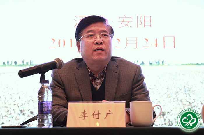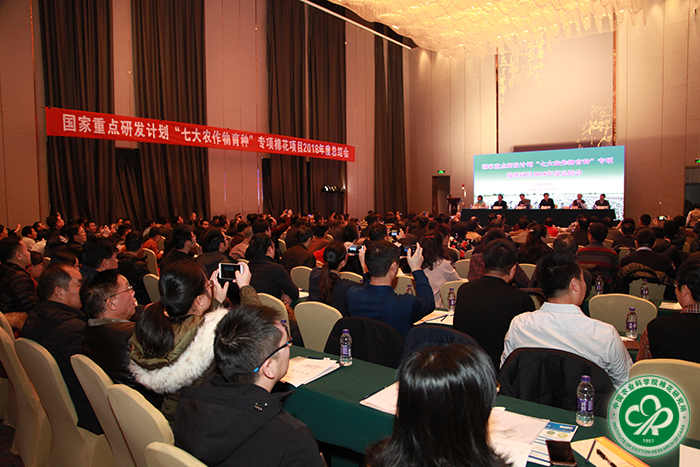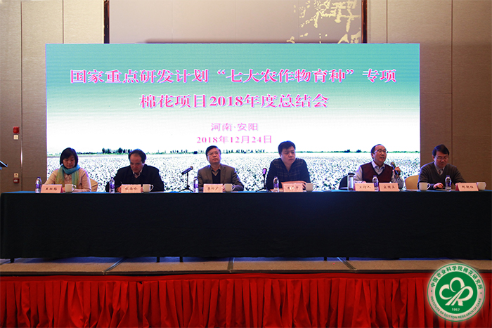 2018年12月24日,由我所主持的国家重点研发计划“七大作物育种”专项棉花项目2018年度总结会在安阳召开。中国农村技术开发中心处长朱华平、项目专员方磊、财务专家丁自立,我所所长李付广、党委副书记宋国立、副所长张西岭及“棉花杂种优势利用技术与强优势杂交种创制” “西北内陆优质机采棉花新品种培育” “长江流域高产高效棉花新品种培育” “黄河流域高效轻简化棉花新品种培育”4个项目的课题牵头和参加单位主要负责人近200人参加会议。会议开幕式由宋国立主持。