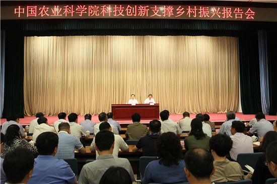 5月27日,农业农村部部长韩长赋在中国农科院出席“科技创新支撑乡村振兴”报告会并作报告。他强调,乡村振兴离不开科技支撑。中国农科院等农业科研单位和农业科技工作者,要深入贯彻习近平总书记关于农业科技创新和“三个面向”“两个一流”的重要指示精神,弘扬科学家精神,切实增强科技服务“三农”的使命感、责任感、紧迫感、荣誉感,立足乡村振兴大战略,面向农业农村现代化主战场,抢抓机遇、主动担当、奋发有为,为我国农业科技进步和“三农”改革发展作出新的更大贡献。农业农村部党组成员、中国农科院院长唐华俊主持报告会。