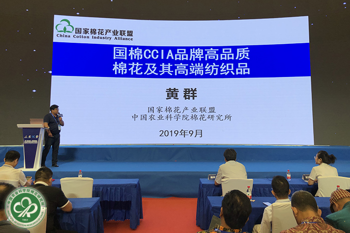 国家棉花产业联盟秘书处处长黄群在先进项目推介会上,详细介绍了CCIA品牌高品质棉花及其高端纺织品,受到了参展人员及新闻媒体的广泛关注与认可。