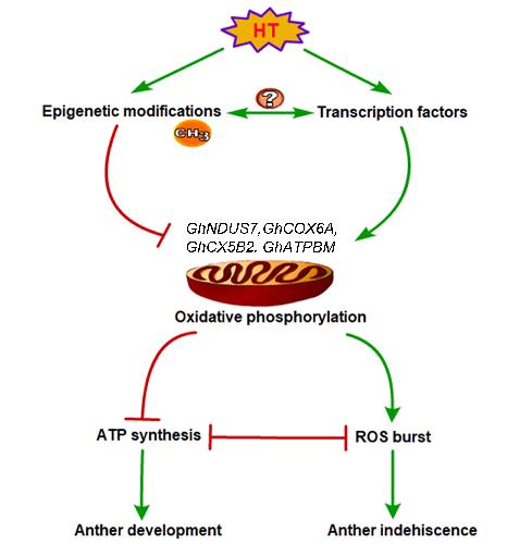 研究发现,高温诱导的DNA去甲基化可通过上调线粒体呼吸链中相关基因的表达来维持三磷酸腺苷合成和活性氧产生的动态平衡,从而保证高温胁迫下棉花花药的正常发育。